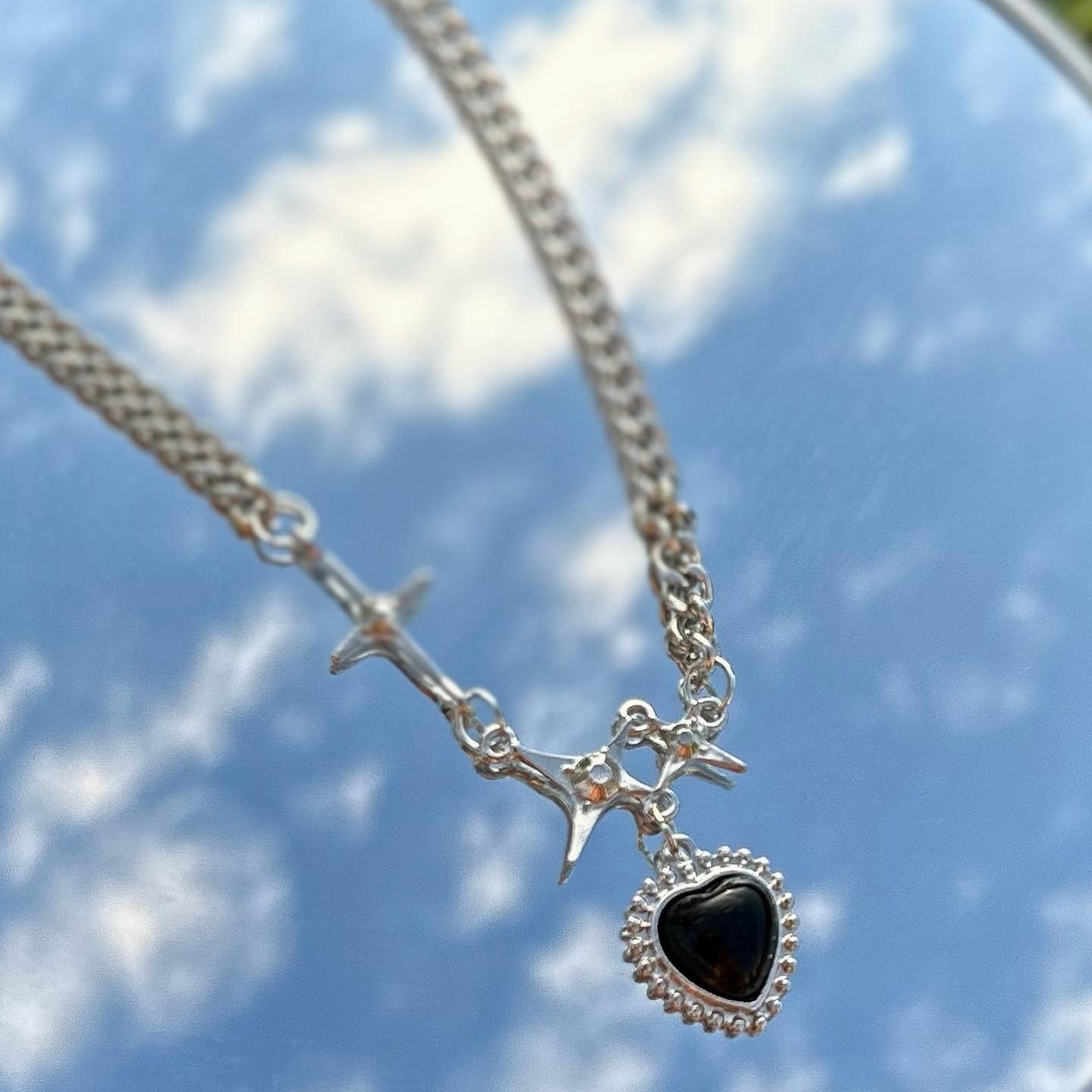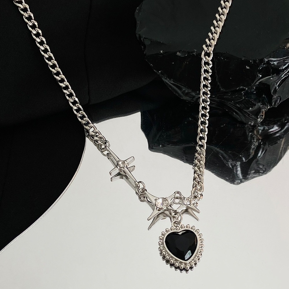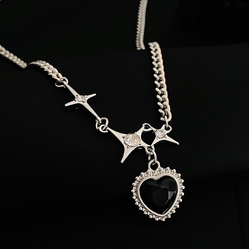 Zircon Star Black Heart Pendant Necklace for Women Punk Shiny Rhinestone Asymmetric Chain Necklace Party Jewelry Accessories